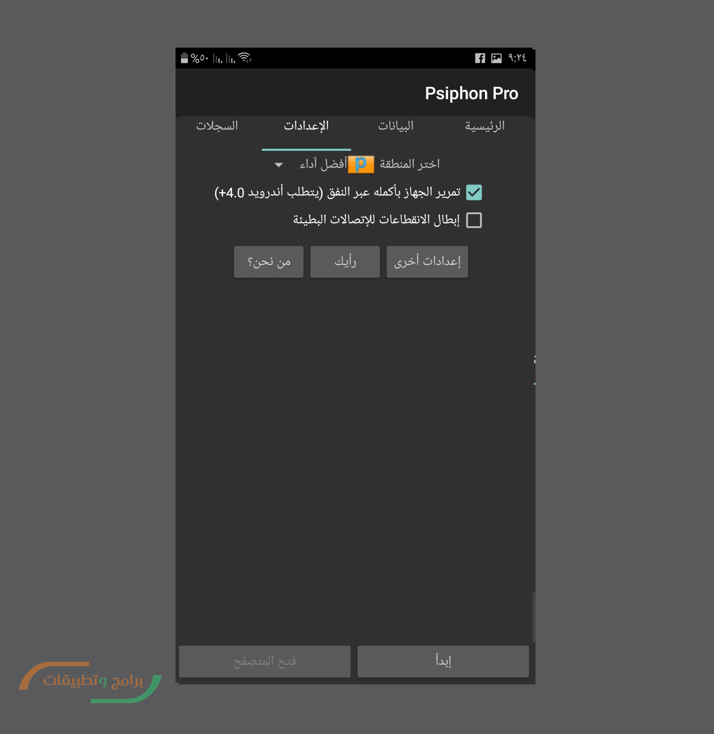 اعدادات برنامج سايفون للأندرويد